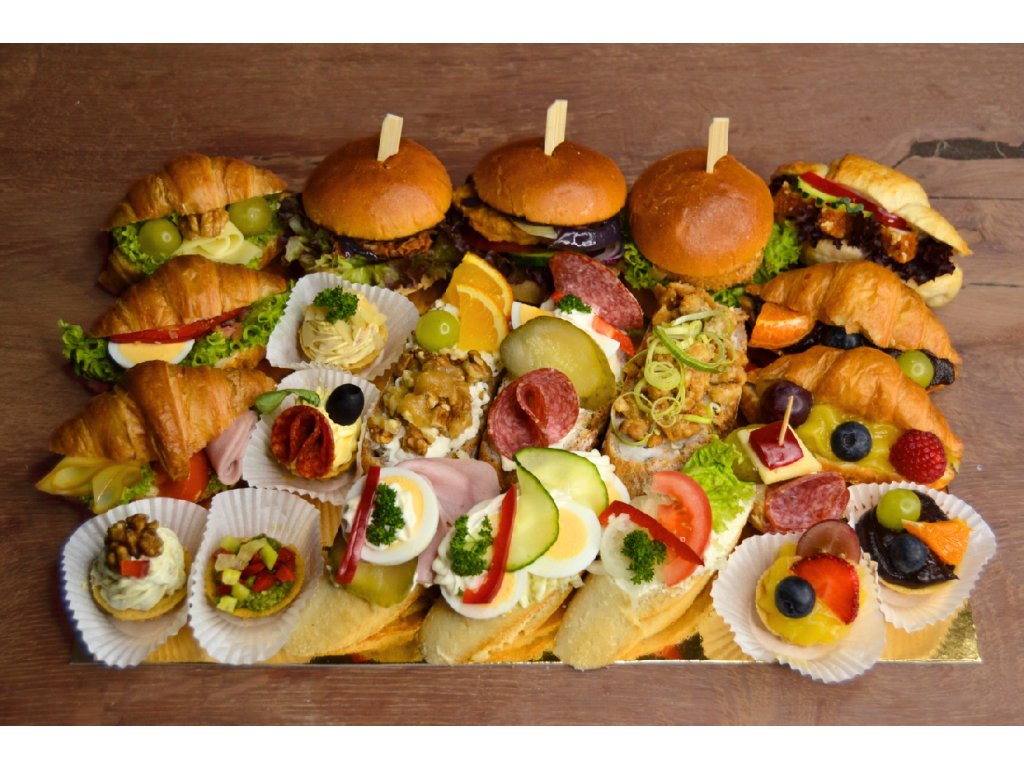 - Mini burger - 3 ks (s trhaným masem - vepřové maso trhané, karamelizovaná červená cibule, rajče, feferonka, BBQ omáčka, salát lolo roso, s kuřecím masem - kuřecí burger, karamelizovaná červená cibule, sýr eidam, oliva, rajče, okurka čerstvá, salát lolo roso, smažák - smažený sýr, tatarská omáčka, salát lolo biondo)